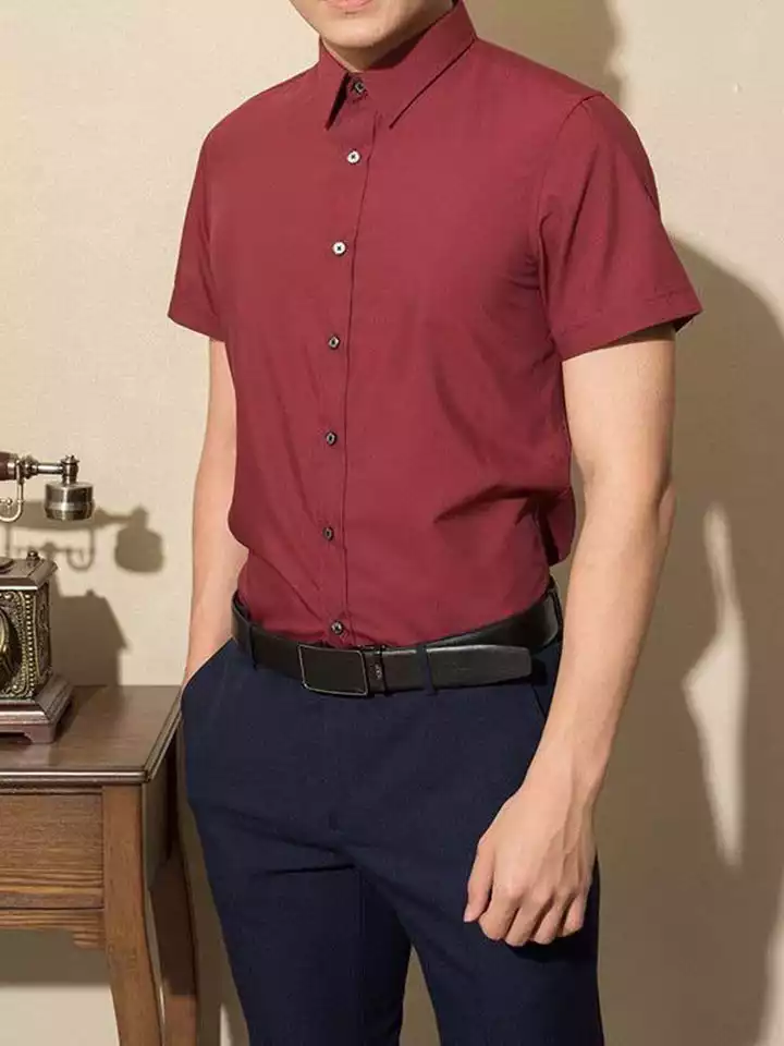 Sơ mi tay ngắn Đỏ - Đỏ đô / 3XL / Chất liệu