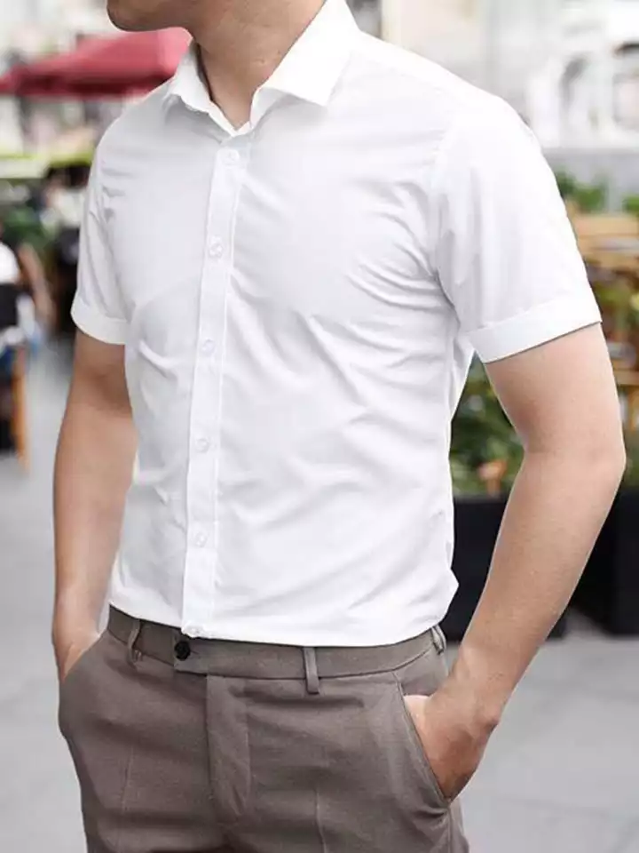 Sơ mi tay ngắn Trắng - Trắng / 3XL / Chất liệu
